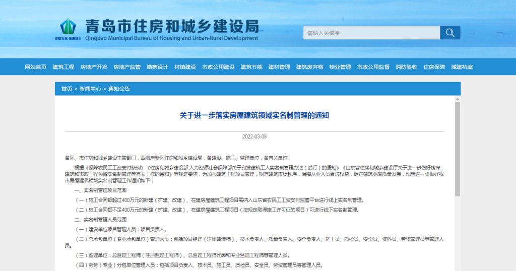 青岛市住建局发文:推动实现建筑市场实名制全覆盖